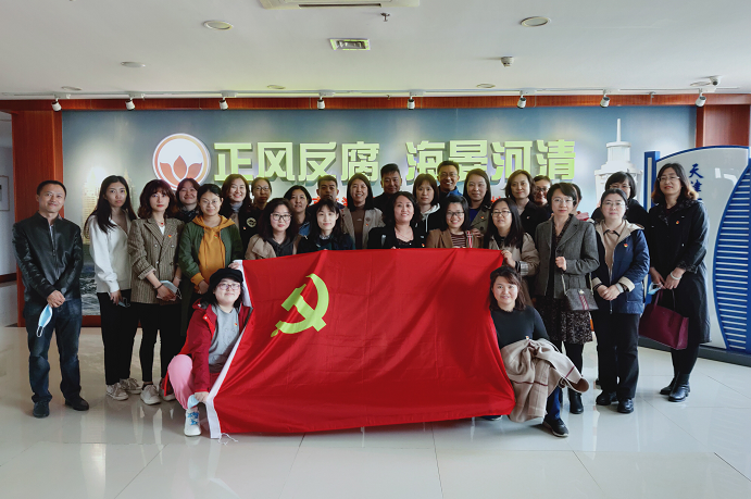 为深入落实管党治党主体责任,扎实推进全面从严治党向纵深发展,筑牢党员干部拒腐防变的思想防线,持续营造风清气正的良好政治生态,4月1日下午学工招就党支部、应用艺术系党支部、物流管理系党支部、机电工程系党支部、经济管理系党支部、国际商务系党支部、马克思主义学院党支部、国际语言学院党支部、教务科研党支部和组织人事党支部共同以“坚定理想信念 净化政治生态”为主题开展党日活动,十个支部的七十余名党员教师一起参观了滨海新区党风廉政教育基地。