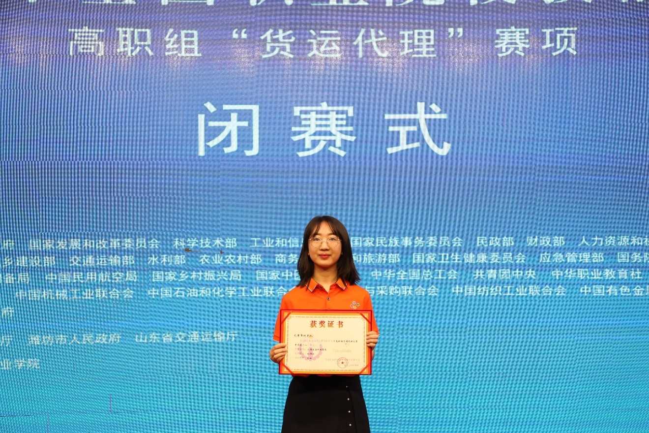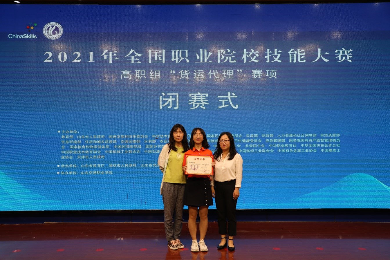 2021年6月8日至12日,全国职业院校技能大赛高职组货运代理赛项在山东省潍坊市山东交通职业学院举行。我院物流管理系王琳老师指导的19级报关与国际货运专业朱师瑶同学喜获全国三等奖的好成绩。