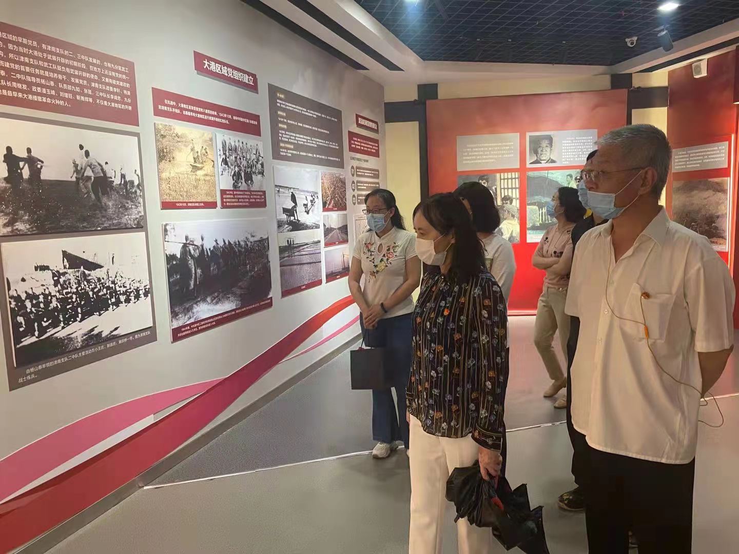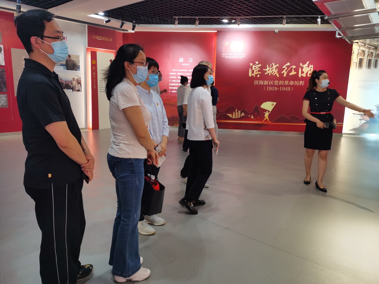在《滨城红潮——滨海新区党的革命历程》专题展览前,党员同志们看到,现场展出百余张与滨海新区党史发展密切关联的珍贵图片,涉及早期党的活动、在抗日救亡运动中建立党组织、抗战期间党组织的建立发展、解放战争时期调整壮大党组织、党领导下的革命斗争五个单元。通过珍贵照片讲述滨城党的红色历程,展现党的卓越风华。同时,党员同志们一行还参观了《家和万事兴》家教家风主题展览和大沽口炮台遗址博物馆。
