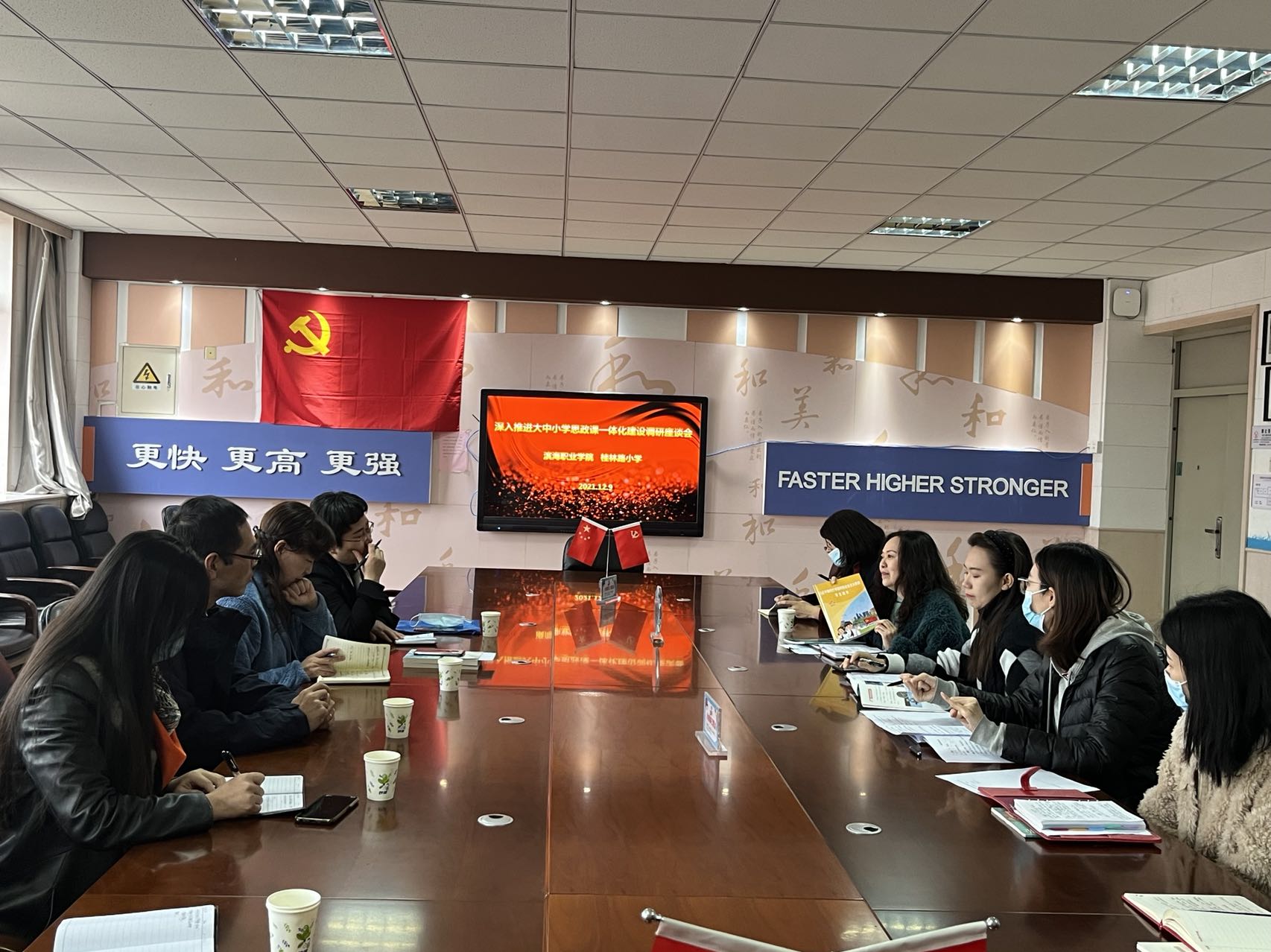 为深入贯彻落实习近平总书记在学校思想政治理论课教师座谈会上讲话精神,以及中办、国办《关于深化新时代学校思想政治理论课改革创新的若干意见》,积极推进滨海新区大中小学思政课一体化建设,2021年12月9日上午,马克思主义学院党支部书记、院长李玉梅与武奎、李彬、施苓艳三位思政课教师一起走进桂林路小学,调研大中小学思政课一体化建设问题。桂林路小学主管教学工作的张红副校长,教务处楼莉、冯张平二位主任、以及于秀琪、沙雯、赵春芳、刘晶晶四位思政课教师共同参加了此次调研活动。
